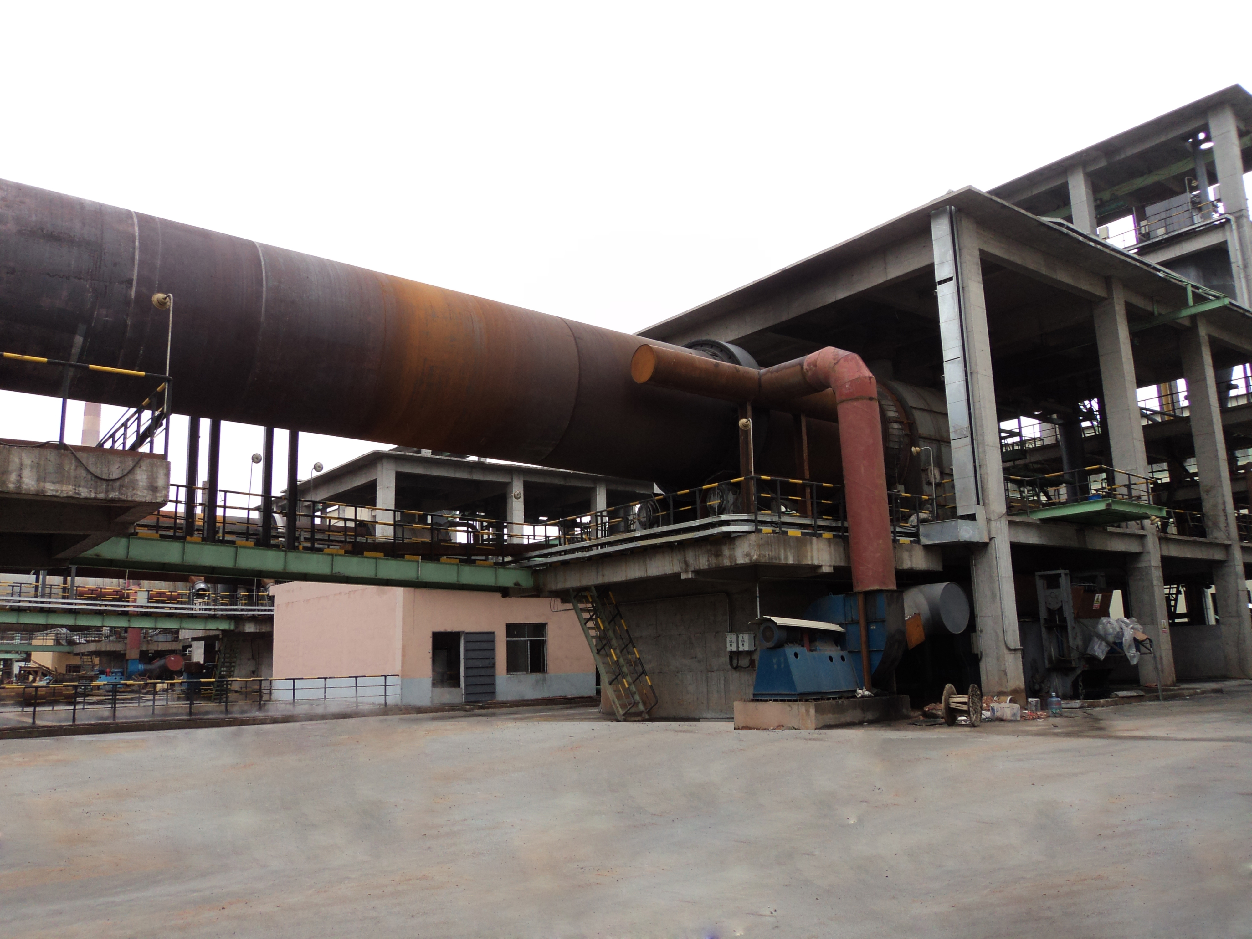 需燃燒處理的物料自窯頭料斗經(jīng)喂料機(jī)構(gòu)均勻給入窯筒體內(nèi),在傳動裝置的帶動下,物料隨筒體的轉(zhuǎn)動而沿筒體軸向前進(jìn),抄板翻轉(zhuǎn)物料、使其煅燒均勻。筒體外側(cè)設(shè)有加熱室。煅燒產(chǎn)生的熱量通過筒體傳給物料,物料在高溫下進(jìn)行分解、干燥、煅燒和焙燒。煅燒好的物料通過卸料閥排出,經(jīng)冷卻包裝后使用。